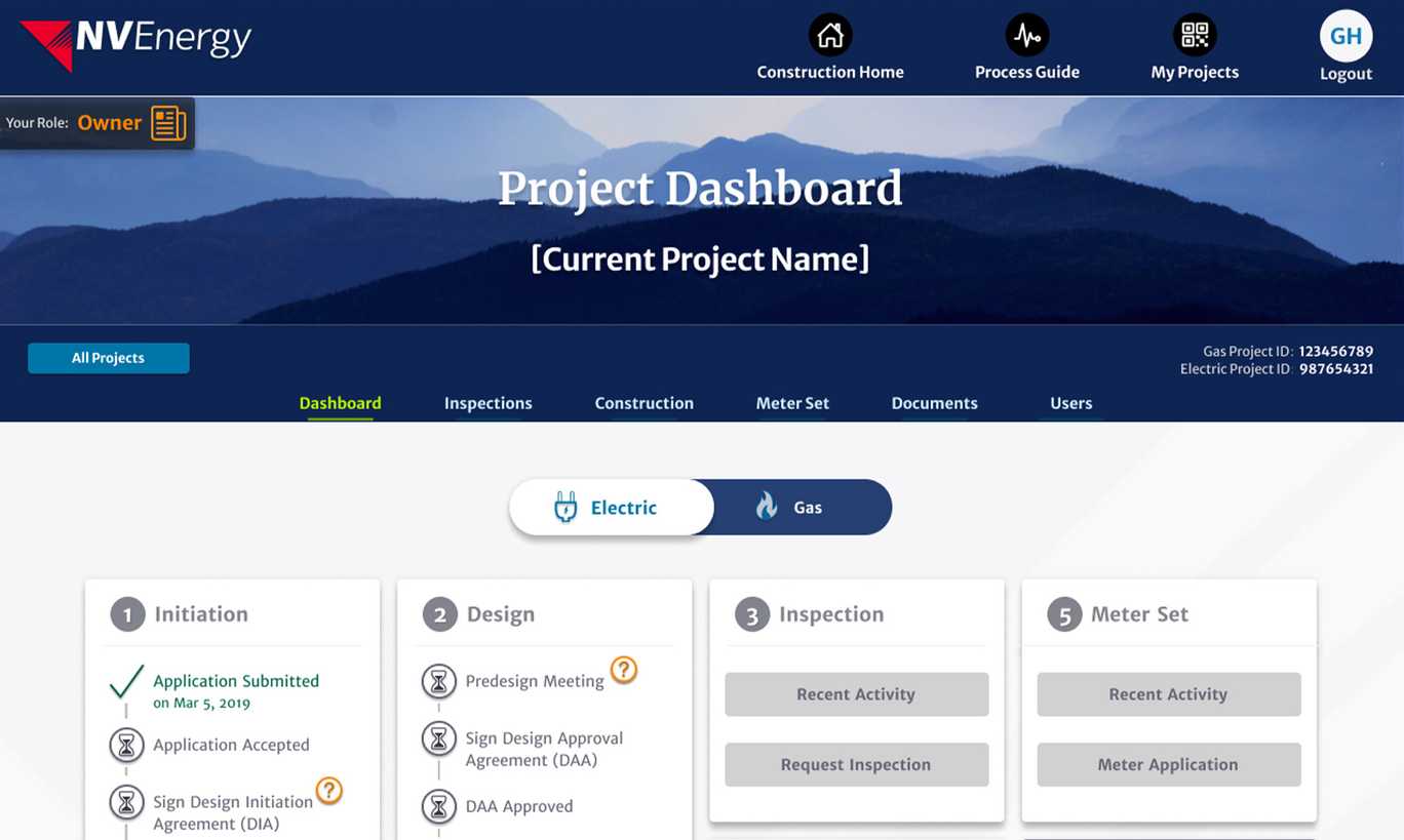 The existing method to secure electrical and gas services for construction sites from Nevada Energy was woefully antiquated. Clients were burdened with the necessity of numerous visits to NVEnergy offices, filling out obsolete PDF forms, and either faxing or physically delivering them. This was followed by the tedious task of making follow-up calls to monitor the status of their applications. The complexity of NVEnergy’s system, with its diverse procedures for different types of construction, posed a significant challenge for customers to navigate.